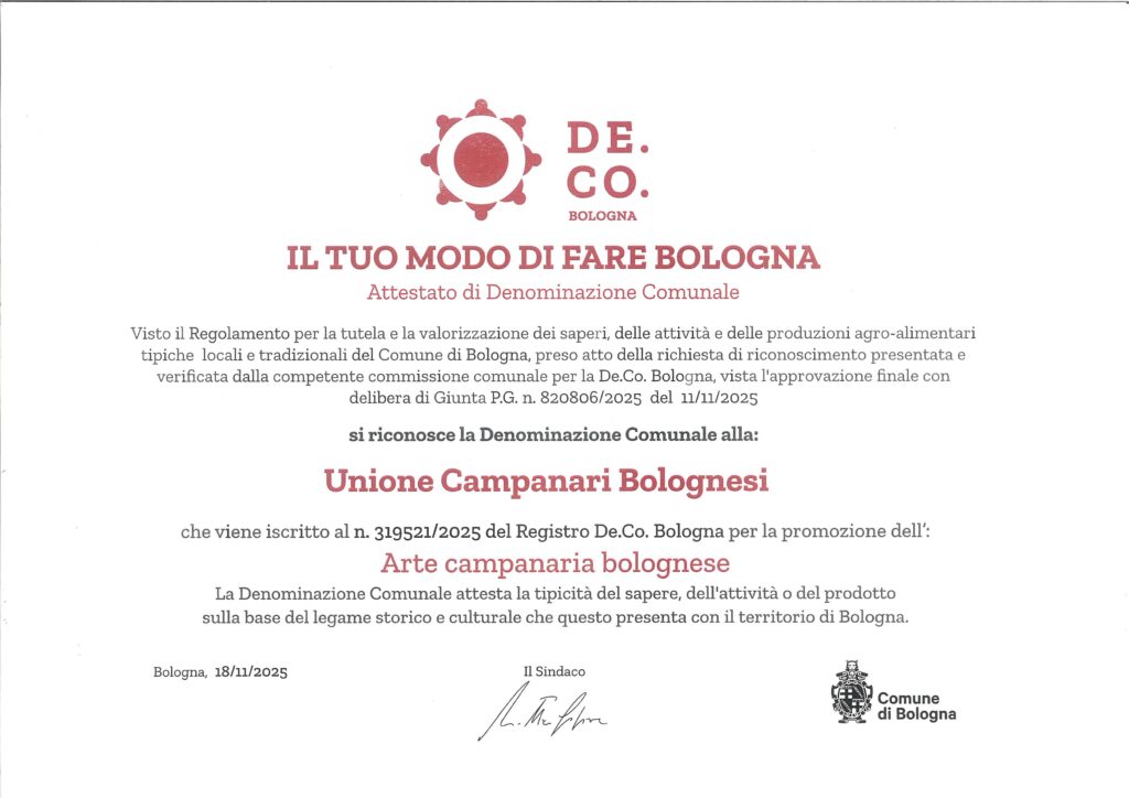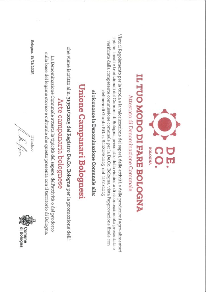 A Bologna è viva e forte la prestigiosa tradizione campanaria del suono manuale delle campane “a doppio”; principalmente al servizio delle celebrazioni liturgiche, in alcune ricorrenze civili, e come testimonianza di arte tramandata e insegnata di generazione in generazione.